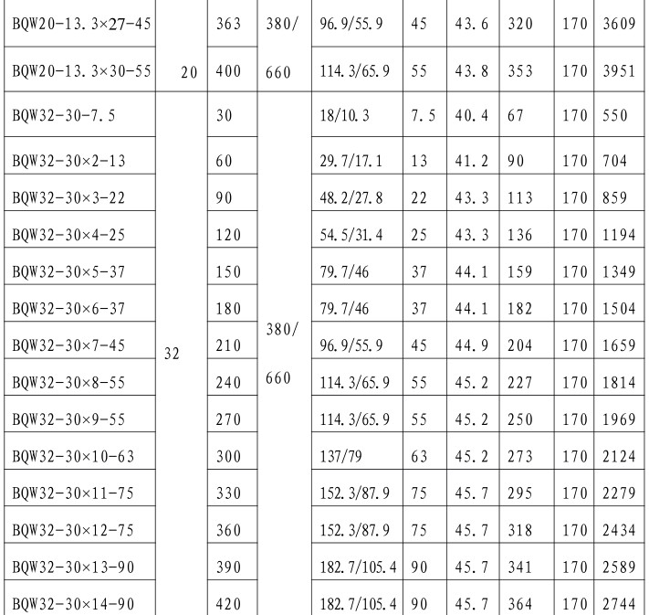 BQW(原QBK型)(系列)礦用隔爆型潛污水電泵是我廠工程技術(shù)人員根據(jù)目前國內(nèi)煤礦井下排水的實(shí)際情況需要,綜合QS型充水式潛水電泵和QBK型排沙潛水泵的技術(shù)特點(diǎn),開發(fā)研制的新一代高可靠性、高壽命的換代產(chǎn)品。